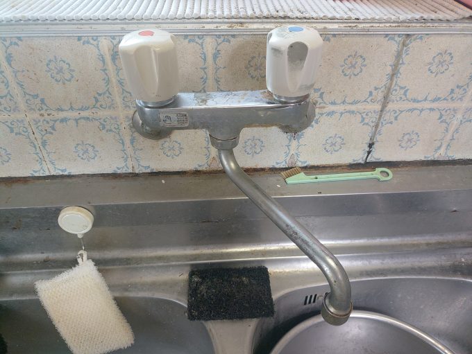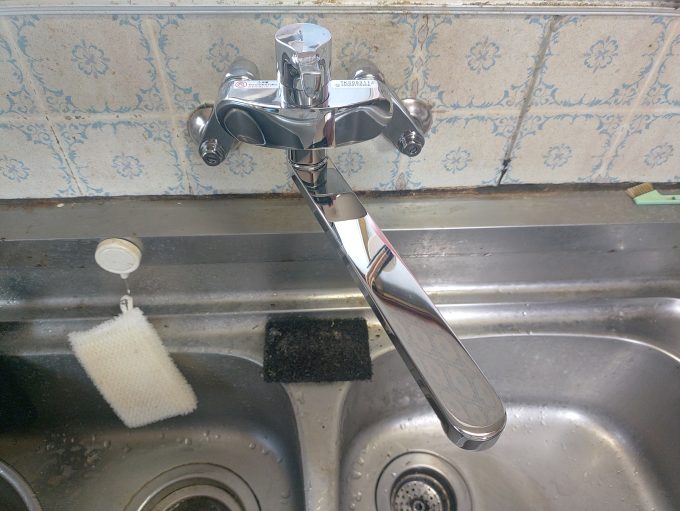 以前にも呼んでいただいたお客様からのご依頼で、普通に締めても台所蛇口の水が漏れるので直して欲しいとの事でした。