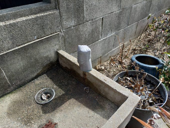山口県山口市嘉川にて屋外給水管止水作業を致しました、