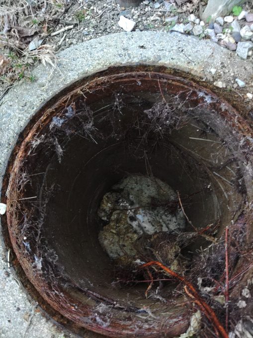 そして最後のマスを確認すると、木の根っこがマス内に侵入し、流れを塞き止めてました。