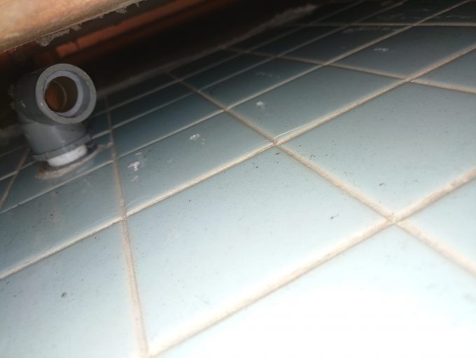 化粧台を取り外し、排水管の取り付け穴の状態を確認しました。